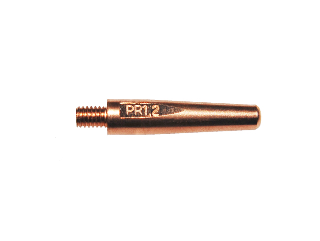 R型 机器人到电嘴 高耐磨材料,使用寿命长,减少更换频度, 适用于机器人、自动焊专机使用 | TET91003 | 1.0mm | 45mm | 适用于中小规范的碳钢、不锈钢MAG/MIG 及脉冲焊接等 |